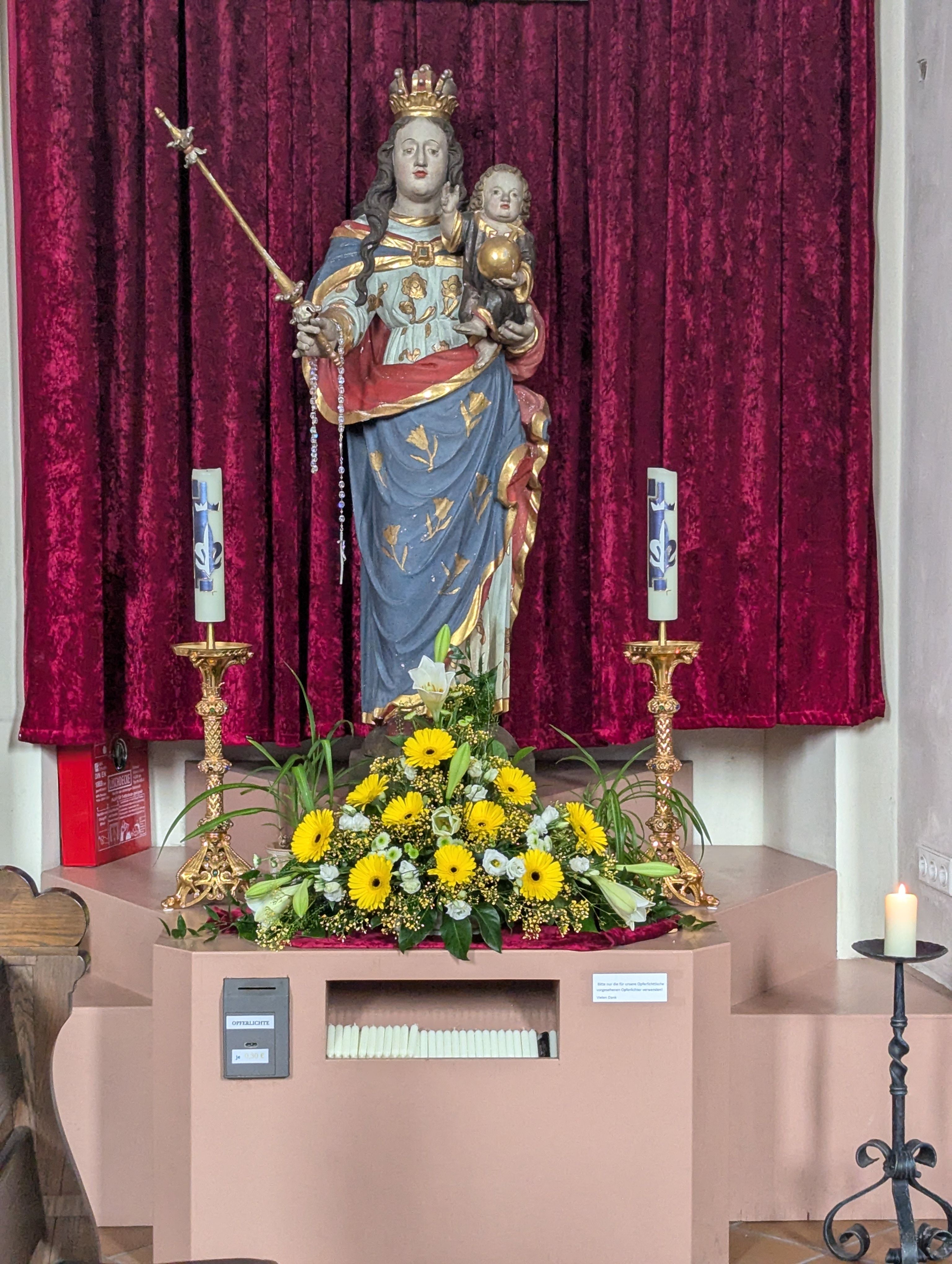 - In einer Seitenkapelle befindet sich die Blutreliquie des Namensgebers unserer Pfarrei.