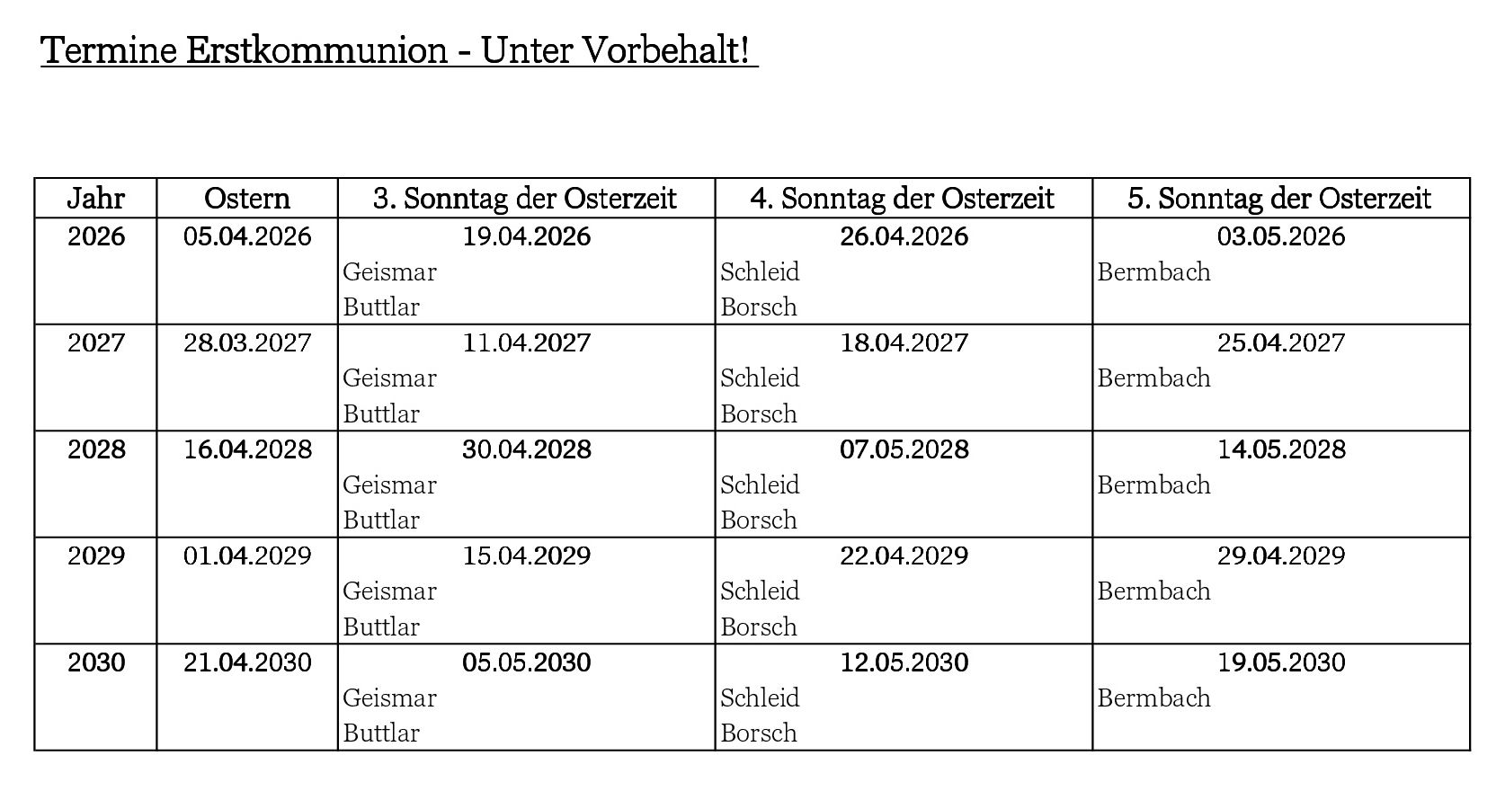 Wann findet die Erstkommunion statt?